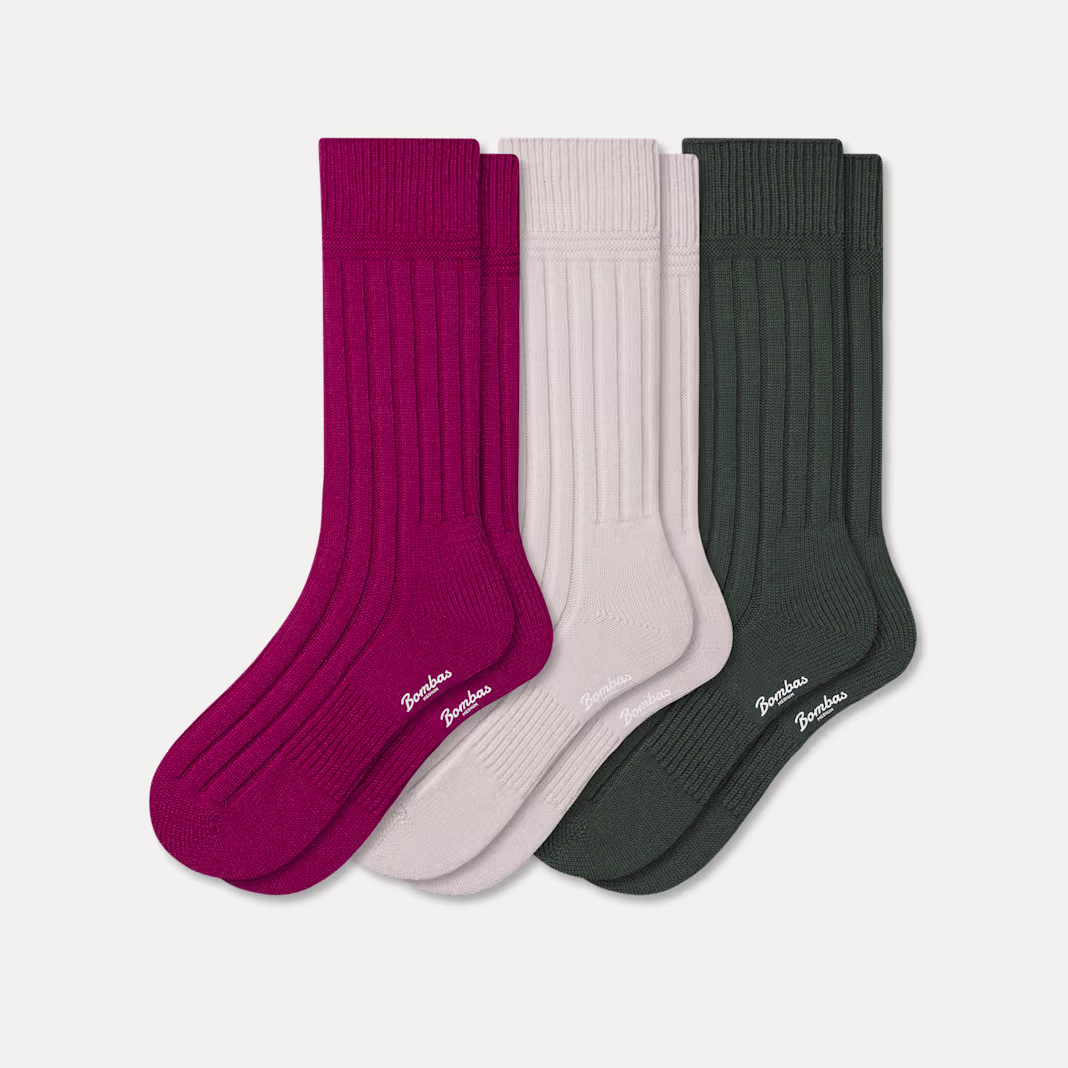 Women's Merino Cashmere Blend Rib Calf Sock 3-Pack
